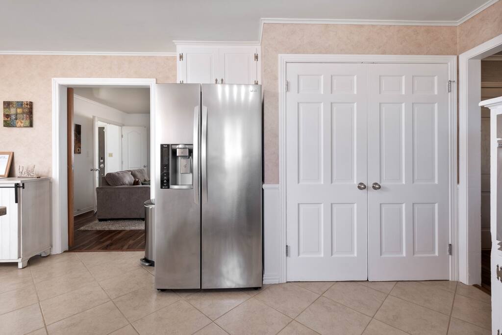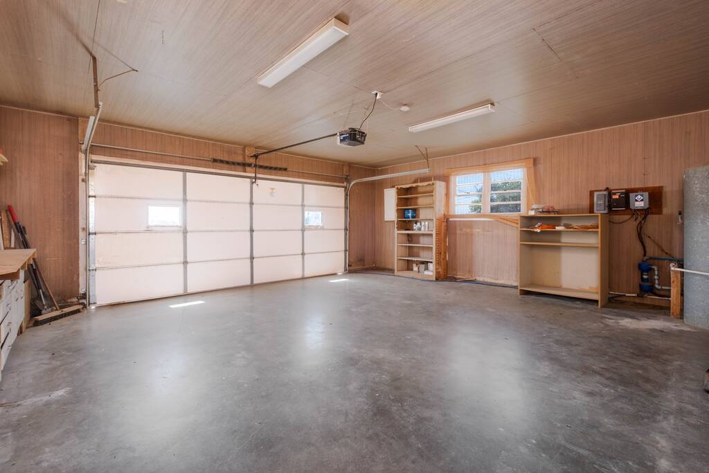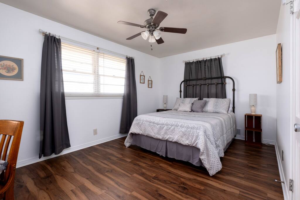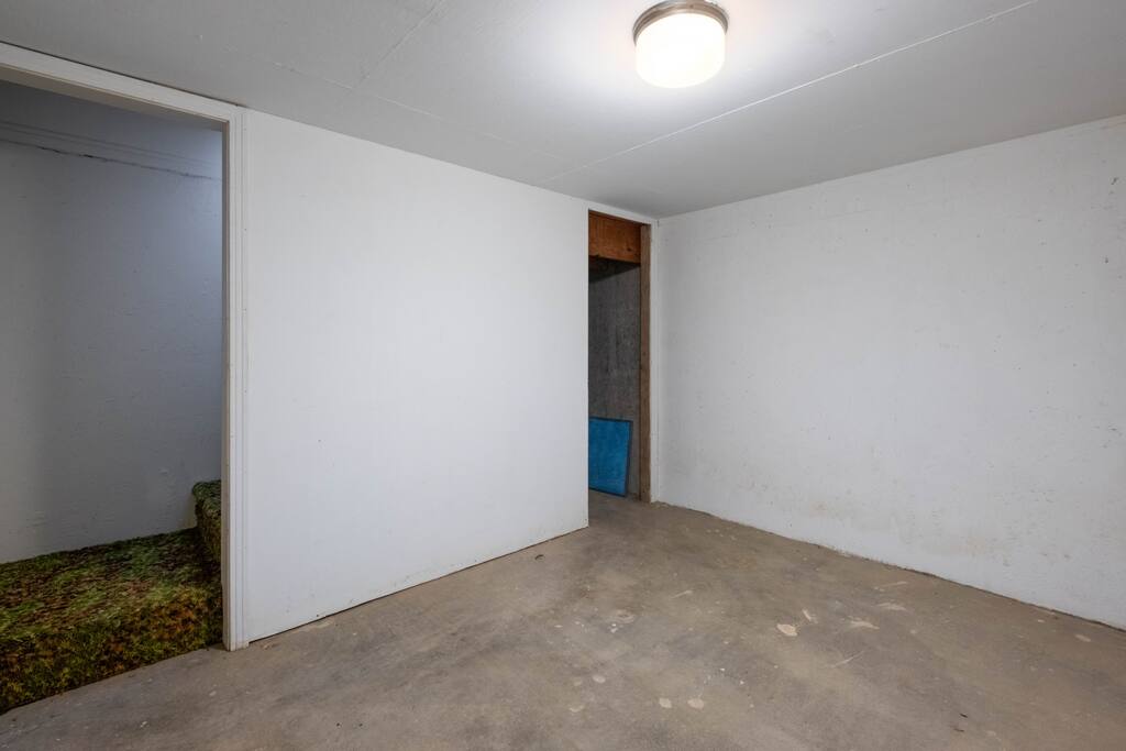 The home has two bedrooms with full queen beds. The third bedroom has a full-size bed with a trundle pullout bed. There are two living rooms with smart televisions. You are free to sign in to your account for each application. Please remember to sign out of your accounts before you leave, if you don't mind. The living rooms are large enough to put an air-up mattress on the floor for an extra guest. The garage can hold two cars and park cars or small trailers. It is also an excellent way to protect your vehicle in bad weather. The basement is for severe weather only. There is nothing else down there, and it is not designed for living. If you wish to sit outside, there will be cushions inside the little shed outside for seating. There is also a BBQ grill in the shed for use. It is a propane grill.