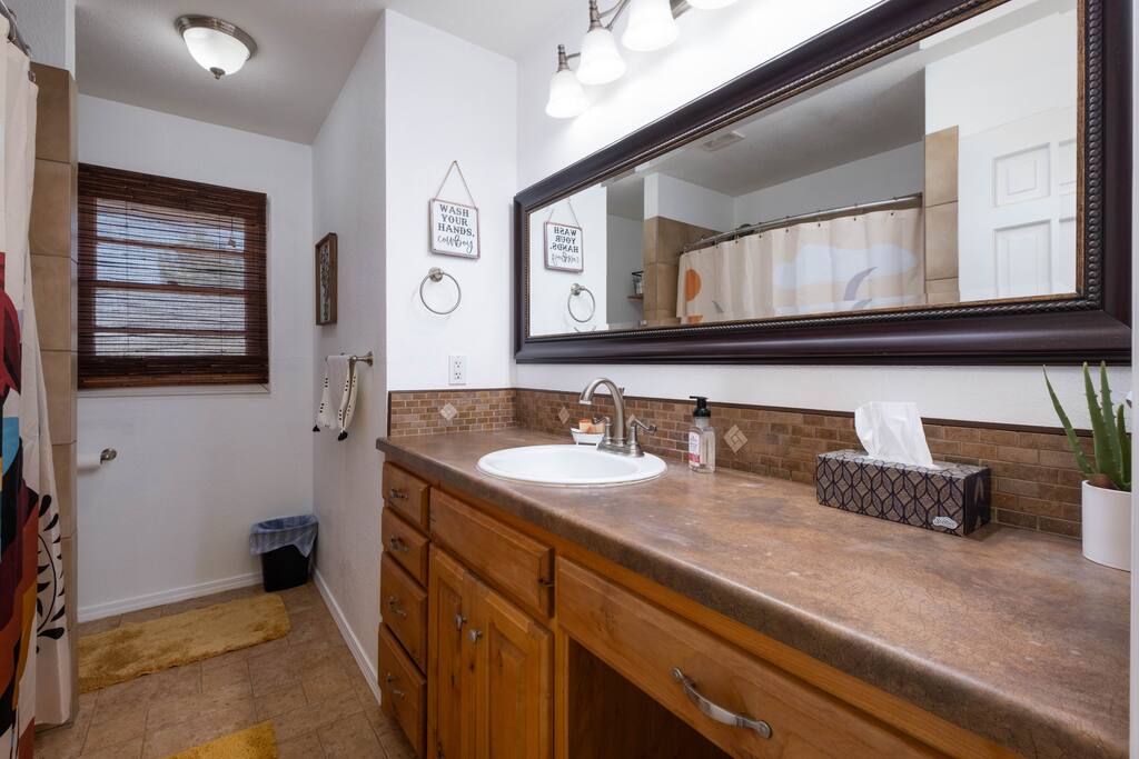 The property sits on 2 acres and is a country property. It is about 15 minutes from Palo Duro Canyon or Downtown Amarillo. We have updated it, and there are zero cleaning fees. The backyard is not completely fenced, so please be aware if you bring your animals.